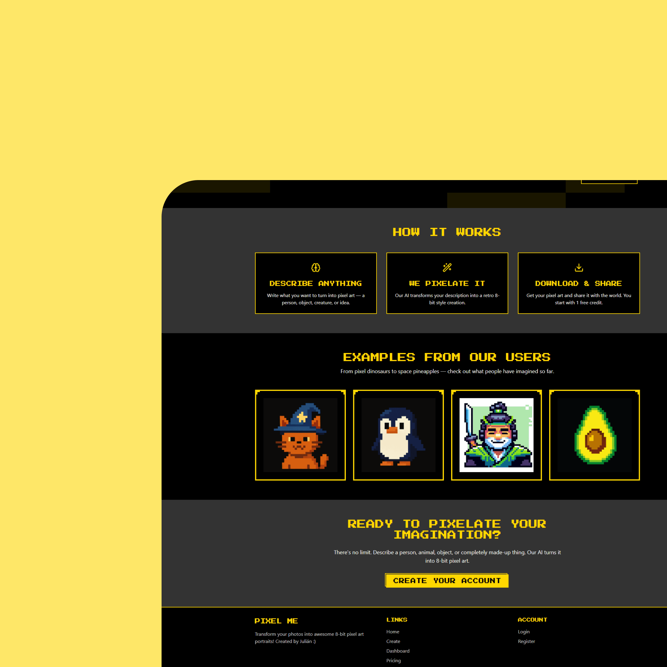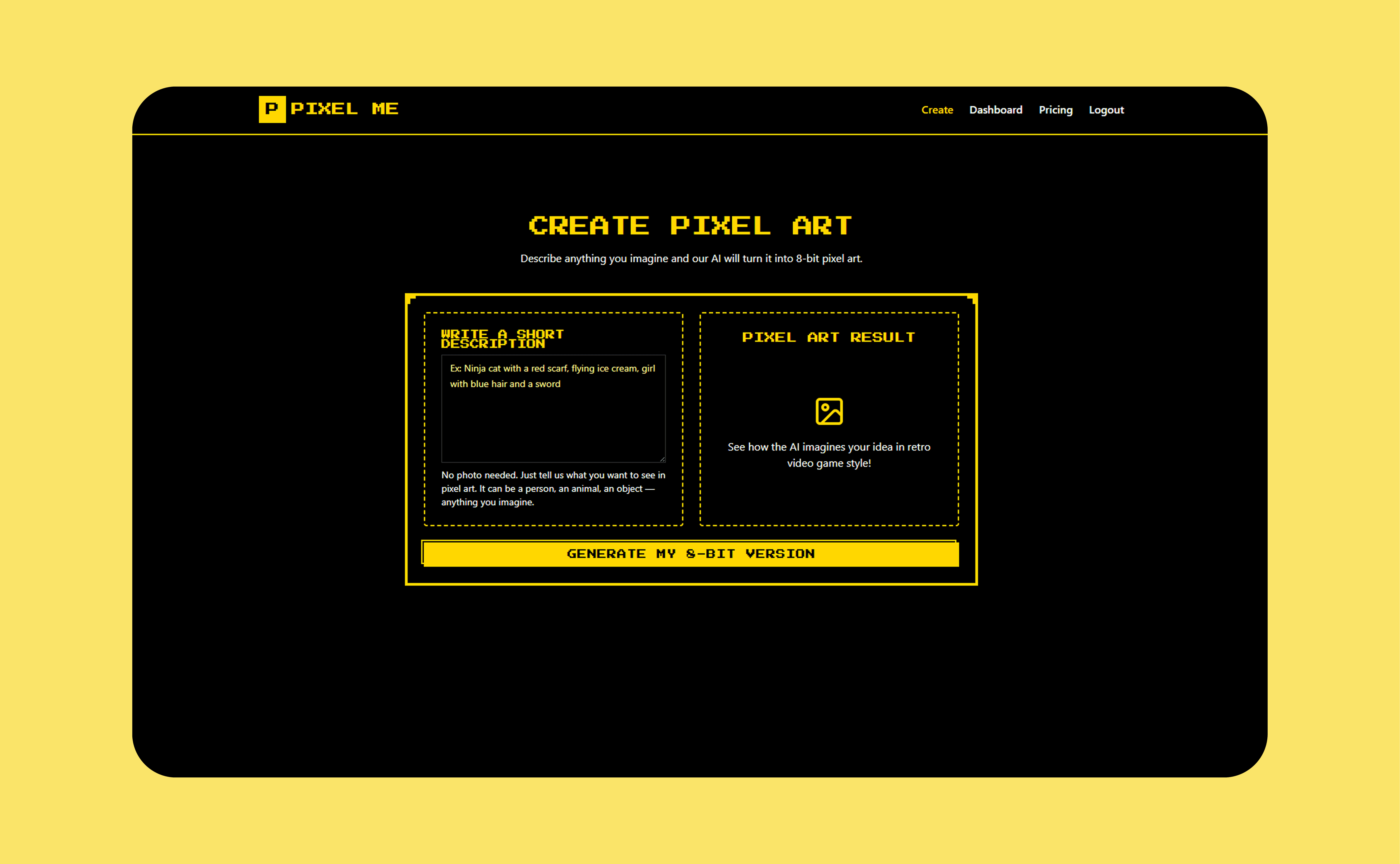 With Pixel Me, I wanted to take that relationship further: using AI not only to assist in design, but as a core part of the product experience itself.